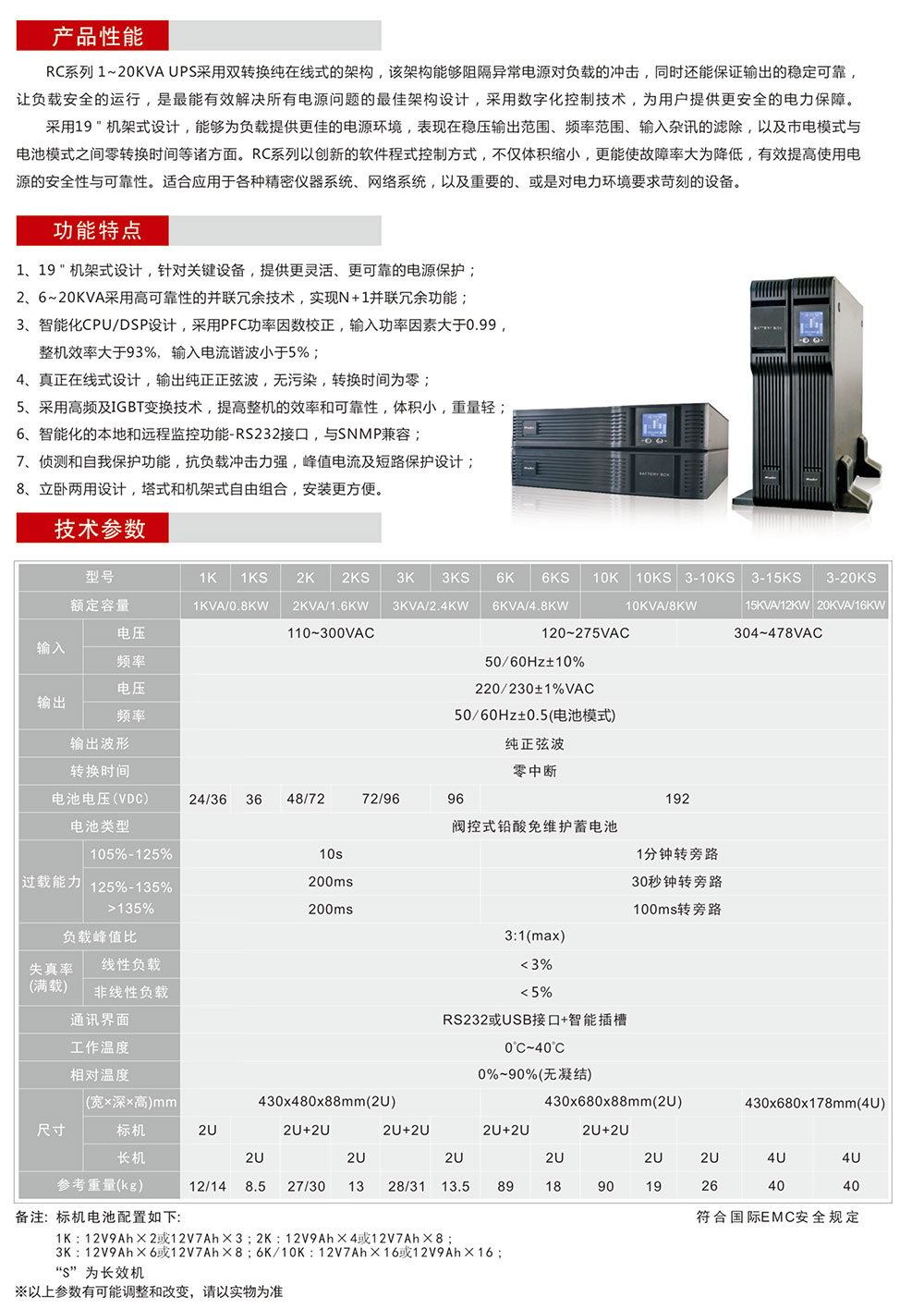 立卧两用高频在线式UPS RC系列:1-20KVA